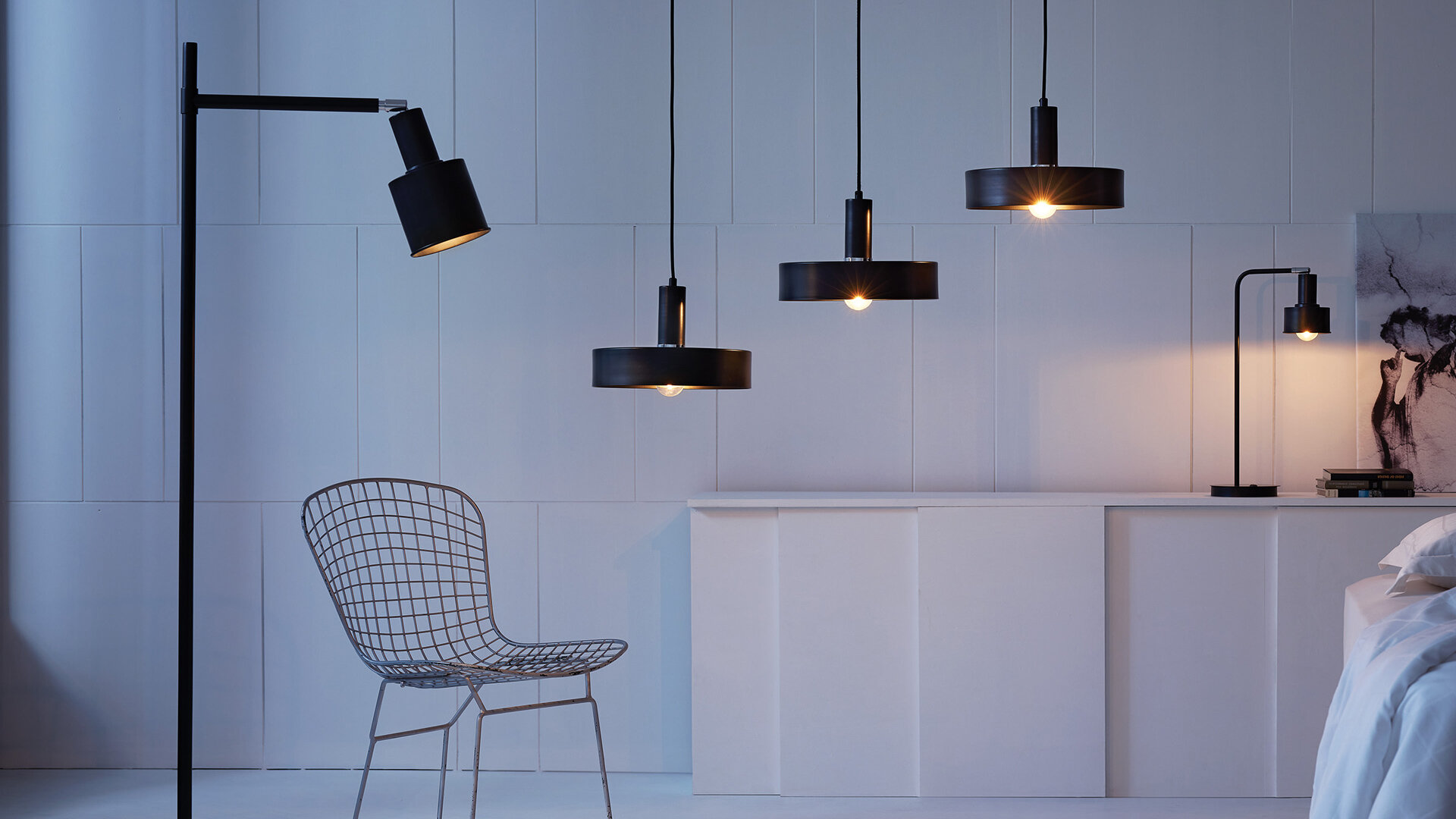 Siyah metal gövde ve başlığını krom detaylarla buluşturarak şık bir tasarım ortaya koyan FAMA AYDINLATMA, modern dekorasyon kurgularında öne çıkan endüstriyel tarzın şık bir örneğini sunuyor. Dekorasyonda dikkat çekici bir detay olarak öne çıkan üçlü başlık tasarımının yanı sıra geometrik formların yalın olduğu kadar güçlü etkisini mekanlara taşıyor.